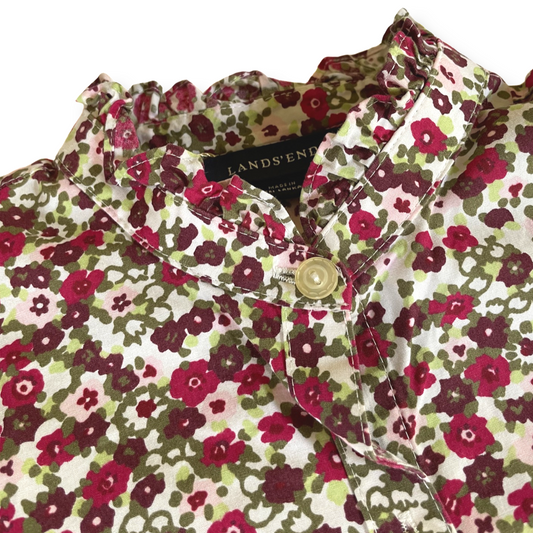Land's End Floral Blouse w/ Ruffle Collar - 8 youth